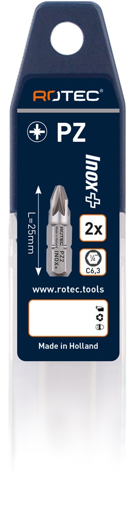 Schroefbit 'Inox+' met C6.3-bitaansluiting, profiel PZ (Pozidriv), hoogelegeerd RVS.
