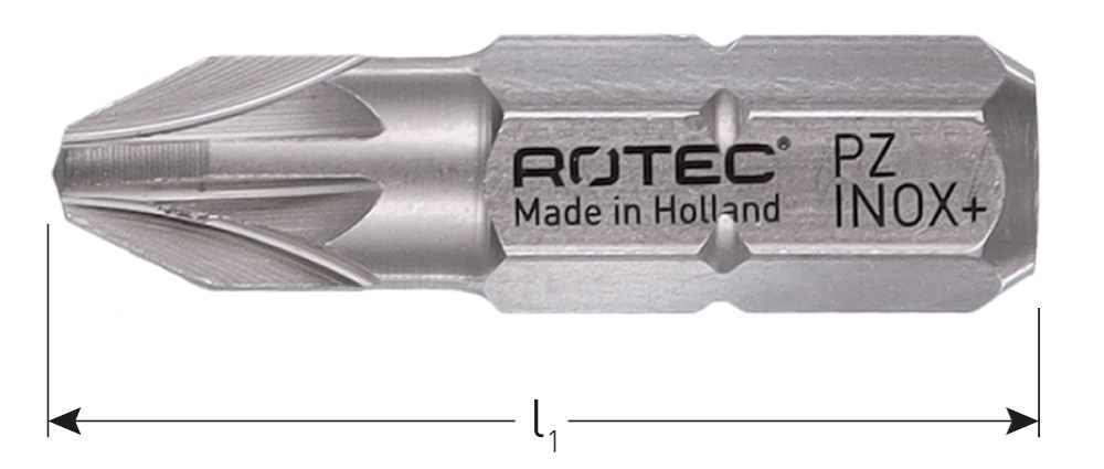 Schroefbit 'Inox+' met C6.3-bitaansluiting, profiel PZ (Pozidriv), hoogelegeerd RVS.