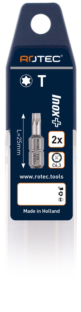 Schroefbit 'Inox+' met C6.3-bitaansluiting, profiel T (Torx), hoogelegeerd RVS.