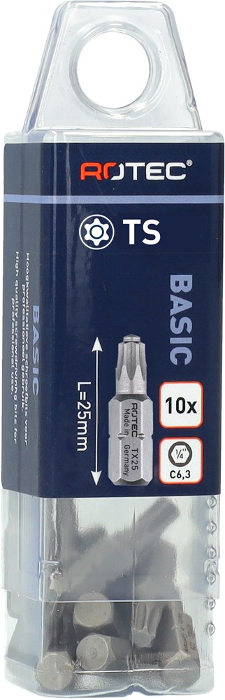 Schroefbit met C6.3-bitaansluiting, profiel T-S (Torx met stift).