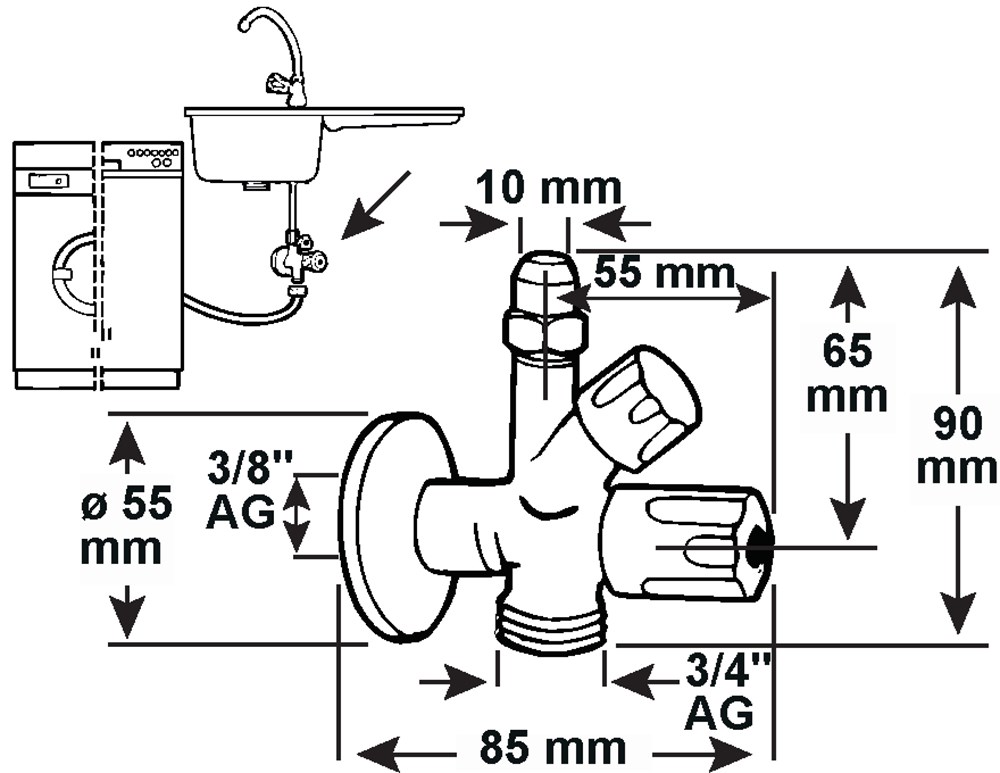 - Voor het eenvoudig aansluiten van een wasmachine of vaatwasser, evenals de koudwateraansluiting van een kraan