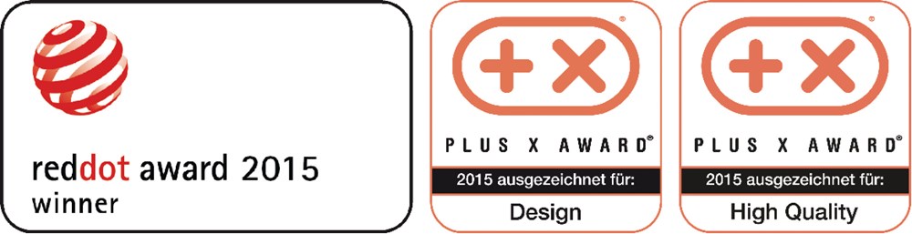 - Reddot Award Winnaar 2015; PLUS X Award bekroond 2015 voor: Ontwerp en hoge kwaliteit
