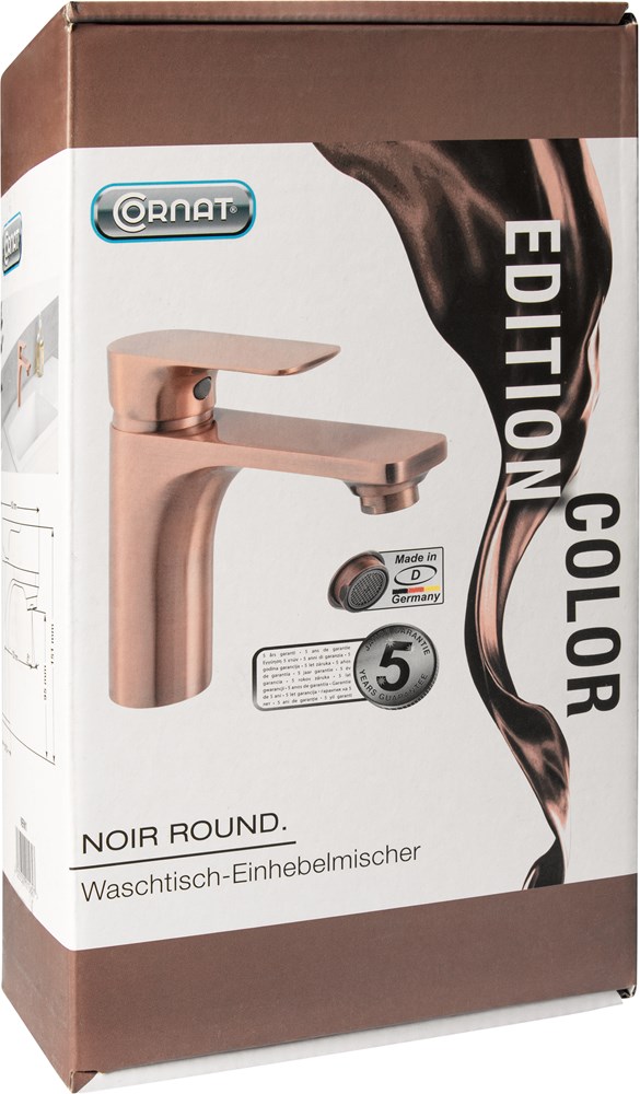 Ontdek tijdloze, moderne lijnen met onze "NOIR Round" eenhendelmengkranen voor de wastafel. De klassieke, ronde mengkranen zijn verkrijgbaar in geweldige oppervlaktedesigns: zwart, zwart/chroom, chroom, roestvrij staal, koper en grafiet. Elke mengkraan wordt geleverd met een bijpassende gekleurde drukafvoerkraan. Geef ook in de badkamer uitdrukking aan je persoonlijkheid. in de badkamer.