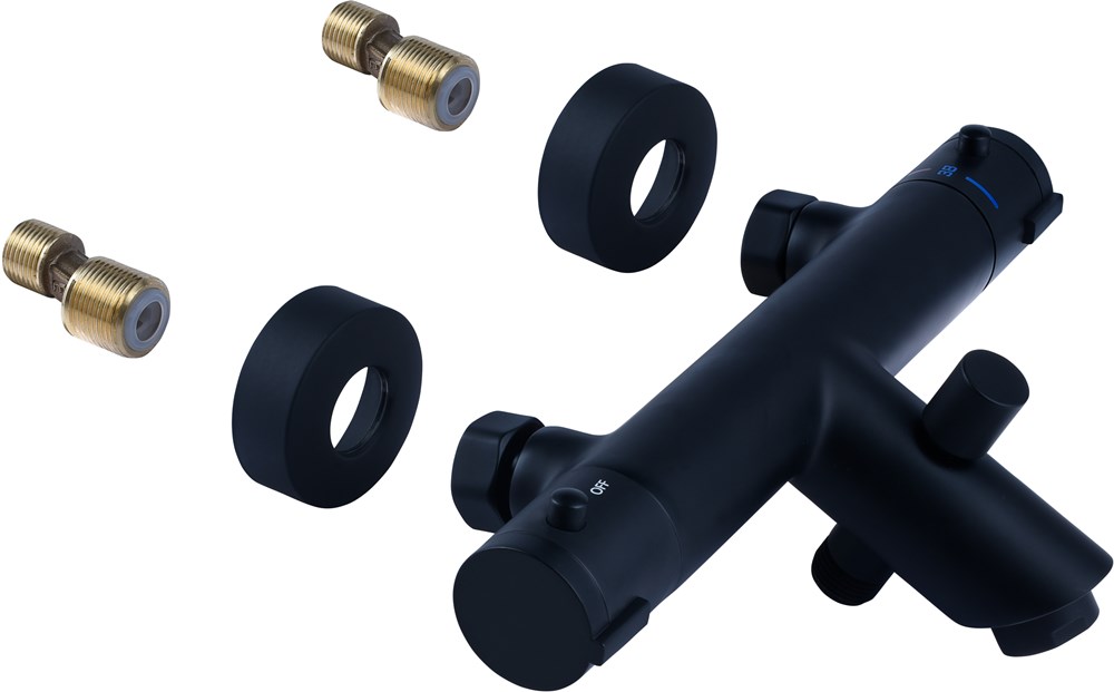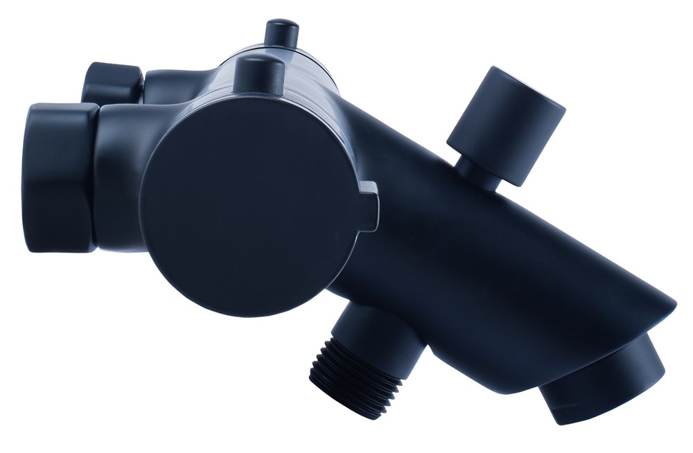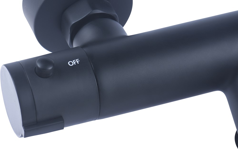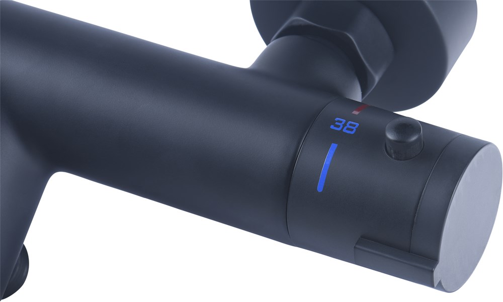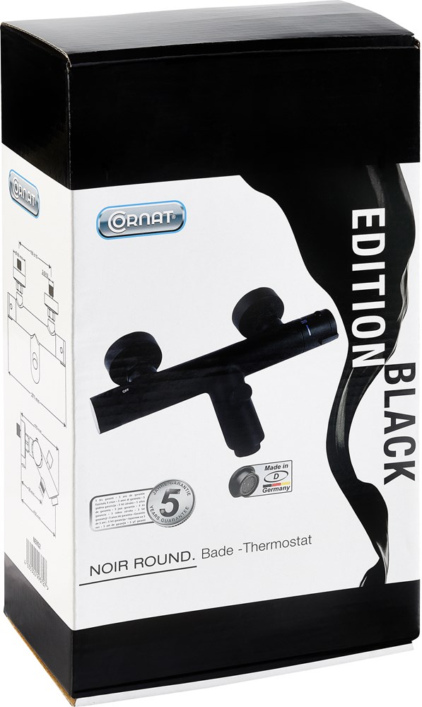 Geïnspireerd door de "industriële look" zorgt de Cornat Black Edition in mat zwart voor een krachtige blikvanger in je badkamer! De badmengkraan "Noir" is ideaal voor aansluiting op een doorstroomverwarmer of de centrale warmwatervoorziening. De gewenste watertemperatuur kan eenvoudig worden ingesteld met de temperatuurkeuphendel. De thermostaat zorgt voor een constante temperatuur en vermindert zo waterverspilling. Met het lichtlopende bedieningselement aan de andere kant van de mengkraan kun je eenvoudig het debiet regelen. De heetwaterblokkering op 38° beschermt ook betrouwbaar tegen te heet water en is dus ideaal voor huishoudens met kinderen. De beluchter verrijkt het uitstromende water automatisch met lucht en zorgt voor een merkbaar zachte straal, terwijl het waterverbruik daalt. Storende stromingsgeluiden worden betrouwbaar geminimaliseerd en ongecontroleerd spatten van het water wordt voorkomen.