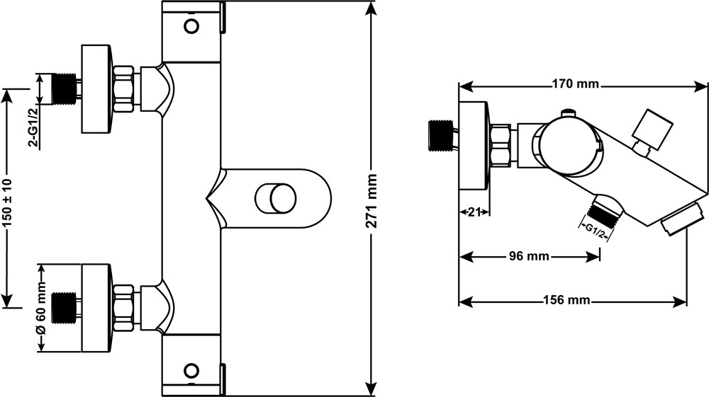 - Hogedrukmengkraan voor installatie op een badkuip - Geschikt voor aansluiting op een doorstroomverwarming of de centrale warmwatervoorziening