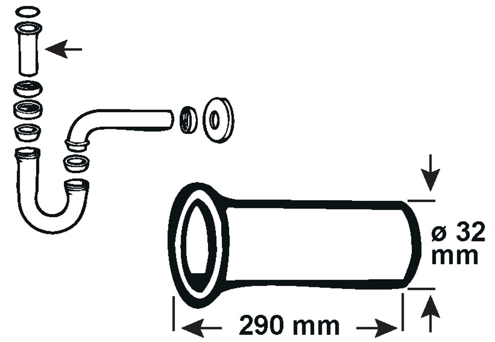RECHTE BUIS 290MM SIPHON D32MM CH