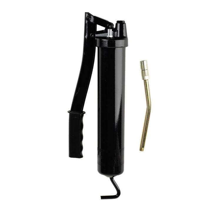Het apparaat verwerkt vetten tot NLGI 2 bij 20 °CVormmanchet met nauwe aansluiting bij los vet of cartouchesDe manchet kan, afhankelijk van de beweeglijkheid van de schuifstang, ook bij een beschadigde cartouche of een niet maatvaste cartouche aangebracht wordenVolgens DIN 1283TÜV-gecertificeerdPompzuigers, cilinders en O-ring met 6? paszeker (geen schijnsmering)Geen schijnsmering, afdichtingssysteem O-ring en ventielkogel voorkomen dat het in de vetspuitkop gecomprimeerde vet zich terugtrektPrestatie na 40.000 gebruikscycli onveranderdVul- en ontluchtingssysteem in de vetspuitkopVetspuitkop van zinkspuitgietwerk Z 410Door de sterke karteling een veilige greepVeilige handgreep aan de drijfstangAntislip handgreep aan de vetspuit-hendelMaakt ook bij een sterke tegendruk een variabele smeerdruk bij een gelijkmatige krachtinwerking mogelijkMoeilijk toegankelijke plaatsen kunnen bereikt worden, omdat het vet bij de kleinste hefboomopening betrouwbaar aangezogen wordt en naar het smeerpunt getransporteerd kan wordenDoor de losse deksel met klemstuk is het mogelijk om de veerkracht in elke positie handmatig te ondersteunen voor de compressie van los vet of om de manchet in beschadigde cartouches te persenDrijfstang in elke positie vastzetbaar - drijfstang hoeft niet compleet naar achteren te worden getrokken om de druk van de veer van het vet te halen (vet verzeept niet)Snelle ontluchting door de vetspuitbuis een halve slag te draaien