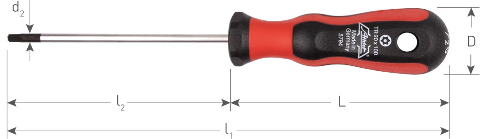 2C-Schroevendraaier, profiel T-T (Torx Tamper) volgens DIN EN ISO 10664. Gemaakt van hoogwaardig verchroomd MoV-staal en voorzien van een gebruineerde tip.