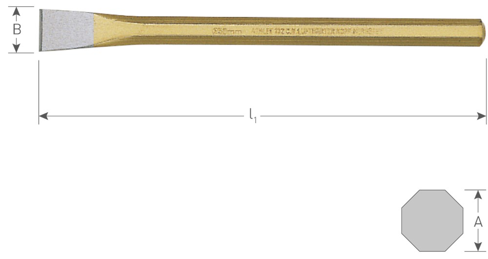 Breekbeitel gemaakt van achtkantig luchtgehard CrV-staal. Het beitelblad is volledig gehard en naslijpbaar. Volgens DIN 7254.
