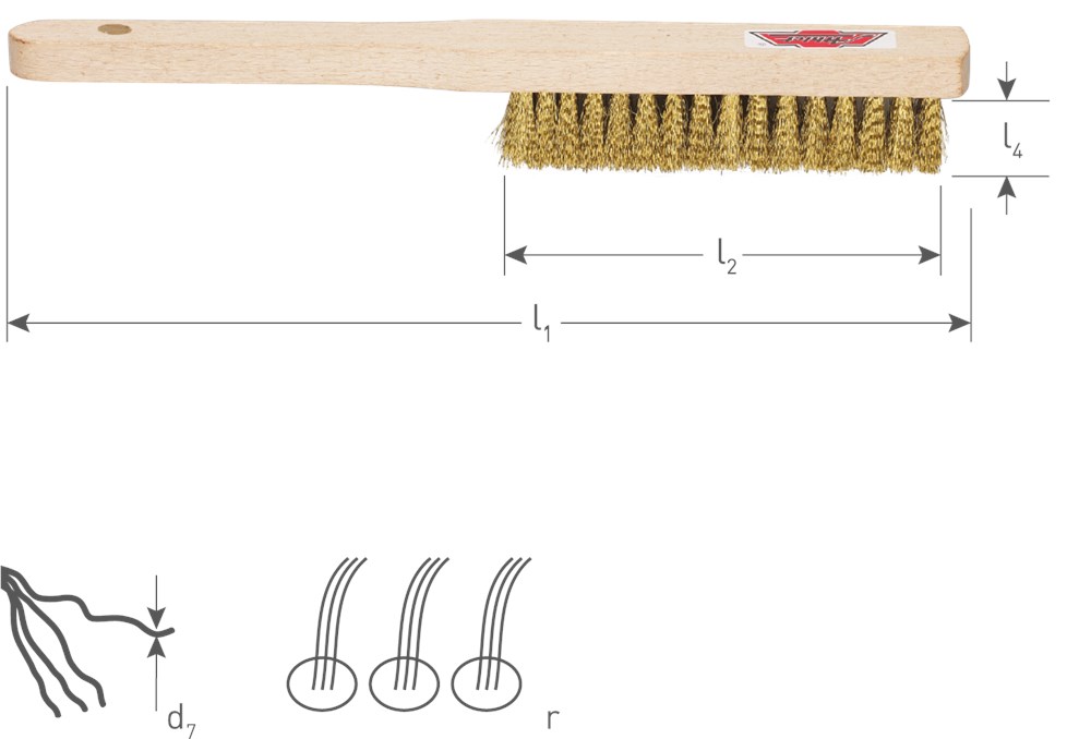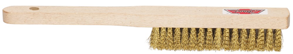 Houten handborstel voorzien van 0,2mm gegolfd, kwaliteitsmessingdraad met hoge dichtheid.