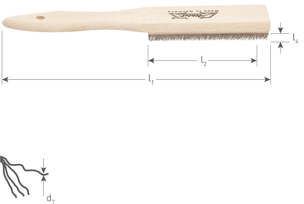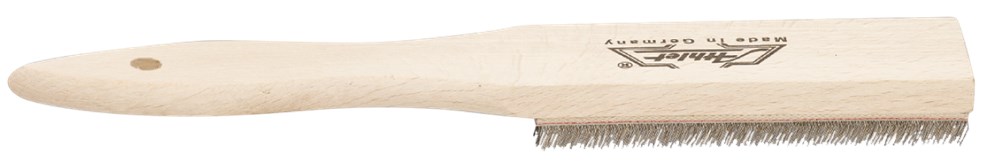 Houten vijlborstel met schraapband voorzien van 0,35mm gehard kwaliteitsstaaldraad.