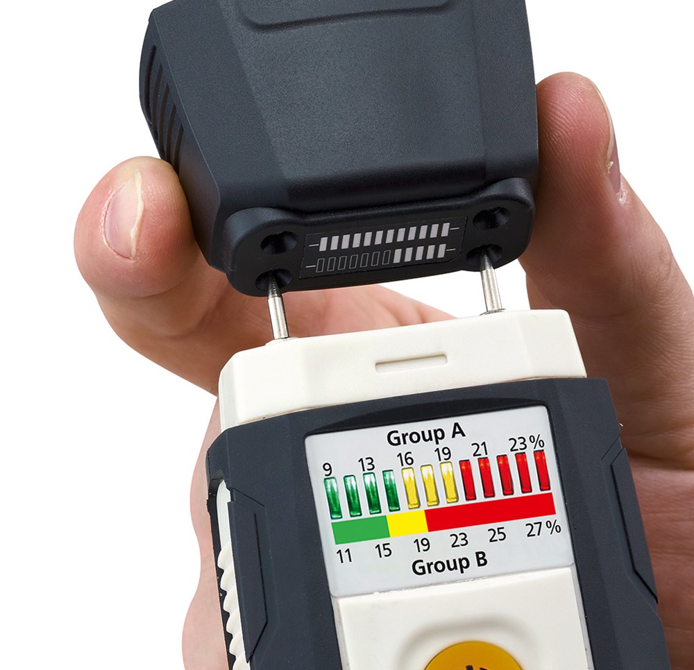 Met dit houtvocht-meettoestel kan de droogtegraad van brandhout exact worden bepaald. Op deze wijze is een effectief energieverbruik mogelijk en kan de uitstoot van schadelijke stoffen worden verminderd. Het meettoestel onderscheidt in verschillende houtgroepen, beschikt over een eenvoudige ééntoetsbediening en heeft een stabiele behuizing. Het vochtgehalte wordt zowel via een 12-cijferig lc-display als in procenten weergegeven. Met een zelftest per referentiemeting via de beschermkap kan het meetapparaat eenvoudig worden gecontroleerd. Dankzij de battery low-weergave is de batterijstatus te allen tijde herkenbaar. Na drie minuten inactiviteit wordt het toestel automatisch uitgeschakeld om energie te besparen.
