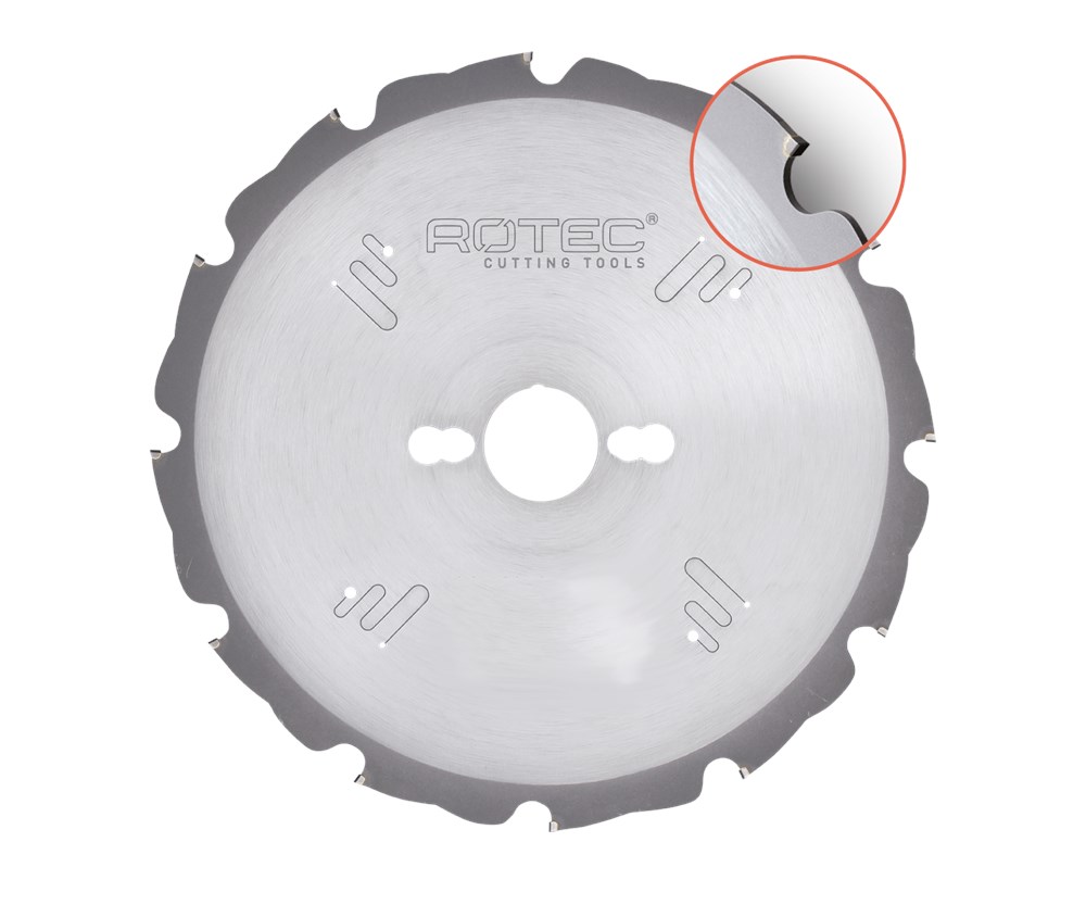 PKD (Poly-Kristallijn-Diamant) bezette tanden met een vlakke tandgeometrie. Blad voorzien van Low-Noise technologie.