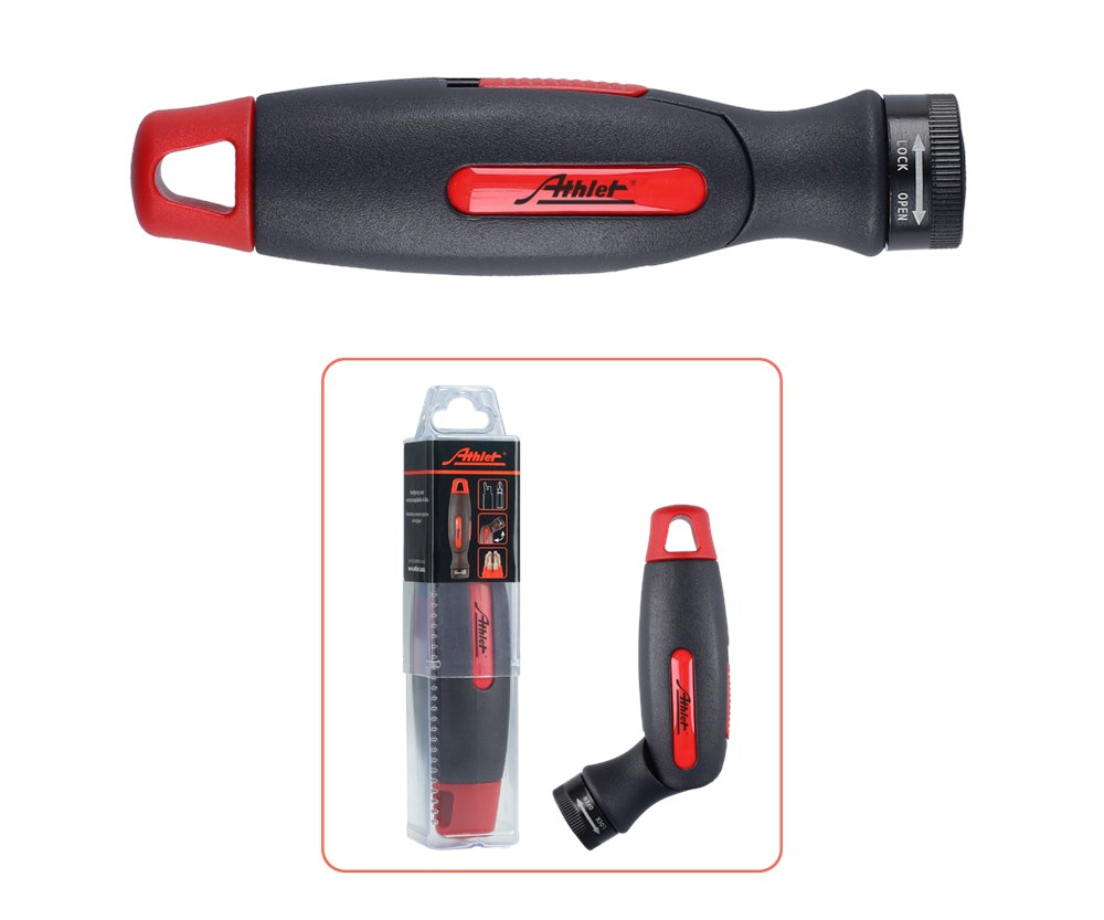 Handgreep voorzien van aansluiting voor reciprozagen en 1/4" schroefbits.