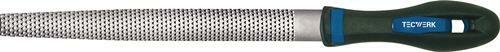 Halfronde, spits toelopende vijl met raspkap aan twee zijden