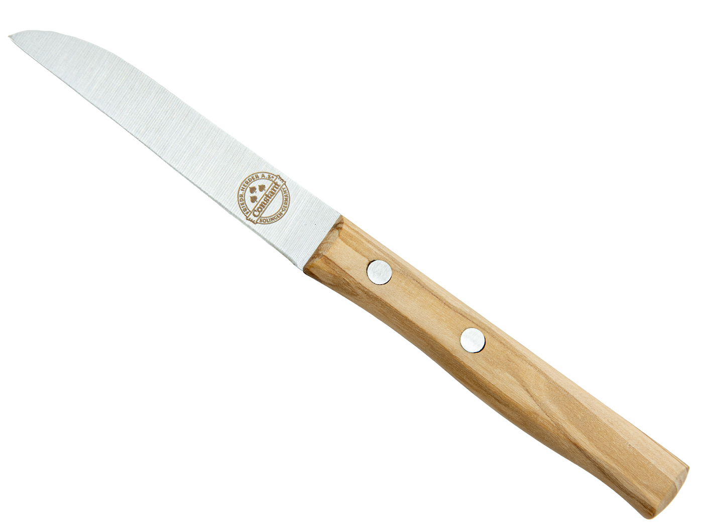 Friedrich Herder Constant Schilmes uitgevoerd met een olijfhouten heft en een vlijmscherp RVS lemmet. Dit mes blijft het langste mooi als deze niet in de vaatwasser gaat.