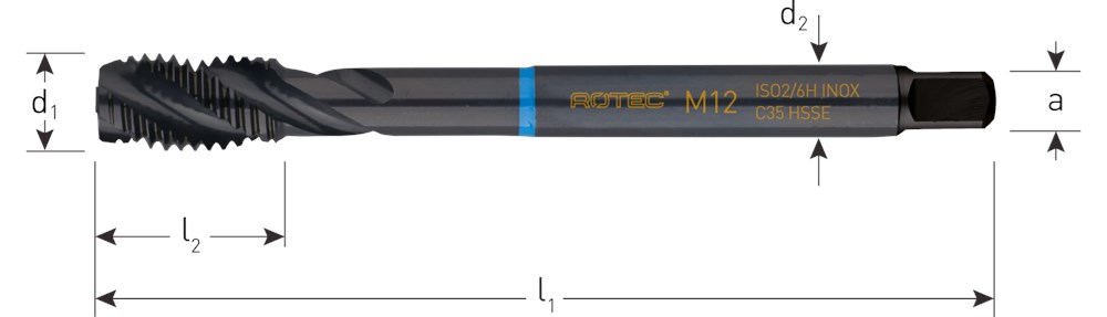Tappen van blinde gaten in roestvaststaal. De INOX tappen zijn ook geschikt voor het tappen in staal <1.000 N/mm². Materiaalgroepen : 1.1 - 1.2 - 1.3 - 1.4 - 2.1 - 2.2 - 2.3
