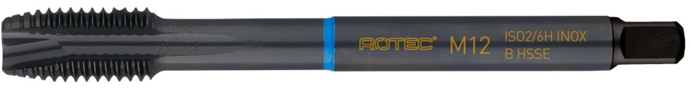 High-performance HSS-E blauwring machinetap DIN 376, metrisch [M], 60°, ISO2 (6H), dunne schacht, type B met schilaansnijding.