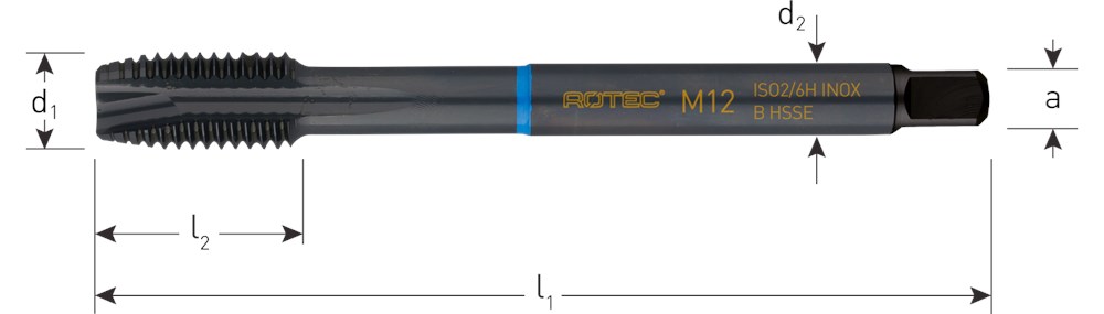 Tappen van doorlopende gaten in roestvaststaal. De INOX tappen zijn ook geschikt voor het tappen in staal <1.000 N/mm². Materiaalgroepen : 1.1 - 1.2 - 1.3 - 1.4 - 2.1 - 2.2 - 2.3