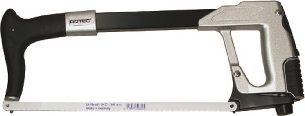 Metaalzaagbeugel Heavy-Duty. Licht ergonomisch gevormde metaalzaagbeugel voorzien van softgrip handgreep. Zeer hoge bladinspanning mogelijk; met als resultaat een zeer zuiver rechte zaagsnede. Wordt geleverd incl. zaagblad. Zaagbladinspanning onder 0⁰ en 55⁰.