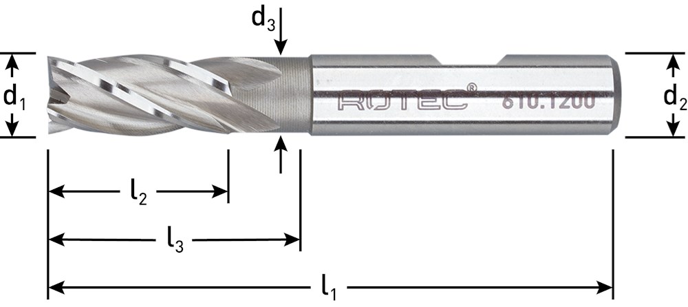 Kort model volgens DIN 844, type N, spiraalhoek 30°, cilindrische schacht met weldonvlak volgens DIN 1835-B.