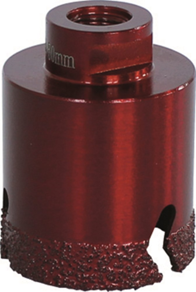Galvanisch belegde diamantboorkroon voorzien van M14 binnendraad. Past op iedere gangbare haakse slijper. Voor het boren zonder koeling van zuivere gaten in keiharde tegels, plavuizen, keramiek.