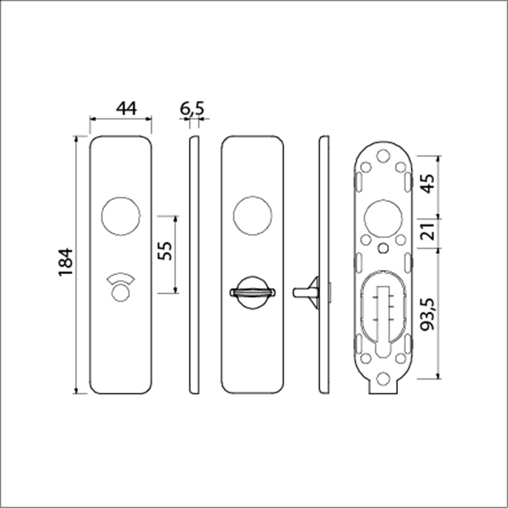 Kortschild 185/44 RH Klik kenmerkt zich door de blinde bevestiging van een hoogwaardig geanodiseerde aluminium afdekplaat op een nylon onderplaat met geintegreerde nylon ring.