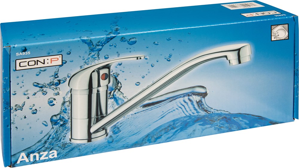 De "Anza" wastafelmengkraan van Con:P past in elke keuken dankzij het klassiek elegante design. Hij is ideaal voor aansluiting op een doorstroomverwarmer of de centrale warmwatervoorziening. Met de lichtlopende bedieningshendel kun je het debiet en de temperatuur precies en gemakkelijk instellen. De draaibare uitloop zorgt voor meer flexibiliteit en creëert enorm veel ruimte, bijvoorbeeld bij het afwassen. De beluchter verrijkt het uitstromende water automatisch met lucht en zorgt voor een merkbaar zachte straal, terwijl het waterverbruik daalt. Dit voorkomt ook ongecontroleerd spatten van het water.