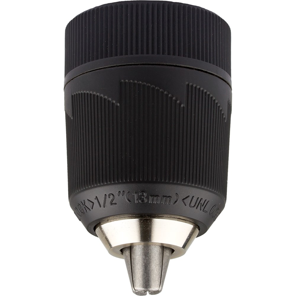 Snelspanboorkop met gering eigen gewicht. Kunststof beklede buitenmantel geschikt voor alle (slag-) boormachines links en rechtsdraaiend, met vergrendeling. Alleen toepasbaar op machines met spindelblokkering.