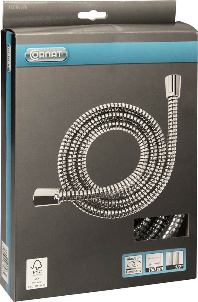 De kunststof doucheslang van Cornat is de ideale aansluiting voor je handdouche. Hij kan eenvoudig en veilig op elke 1/2 inch aansluiting worden gemonteerd. Met zijn klassieke chroomlook past de slang perfect bij elke chromen douchekop. De slanglengte van 150 cm zorgt voor bewegingsvrijheid en garandeert je een comfortabele douche-ervaring.