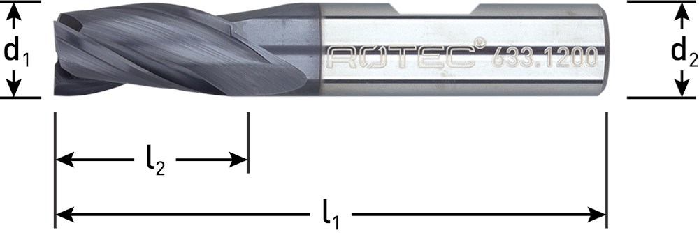 VHM Universeelfrees, kort model, cilindrische schacht met weldonvlak volgens DIN 6535-HB, met TiAlN-coating.
