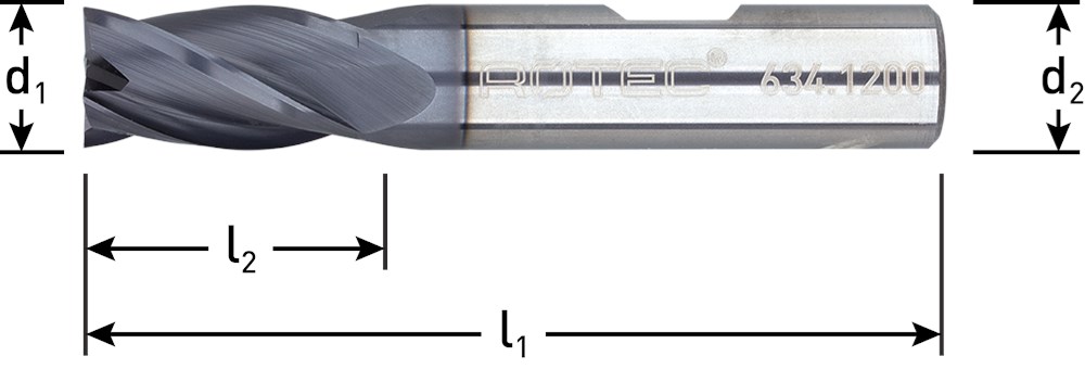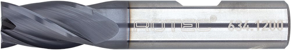 VHM Vingerfrees, kort model, cilindrische schacht met weldonvlak volgens DIN 6535-HB, met TiAlN-coating.