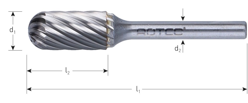 Hardmetalen stiftfrees in cilindervorm met ronde kop, in diverse vertandingen.