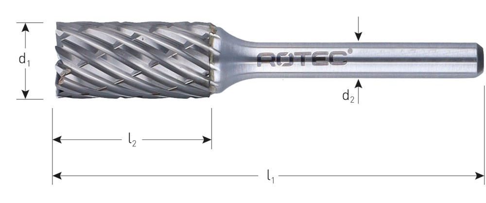 Hardmetalen stiftfrees in cilindervorm, met kopvertanding, in diverse vertandingen. Model B (ISO: ZYA-S).