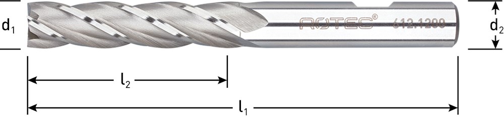 Lang model volgens DIN 844, type N, spiraalhoek 30°, cilindrische schacht met weldonvlak volgens DIN 1835-B.