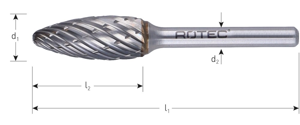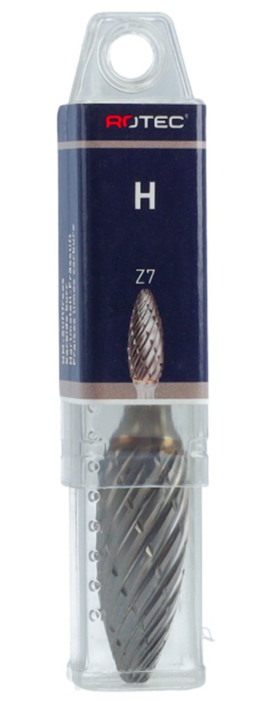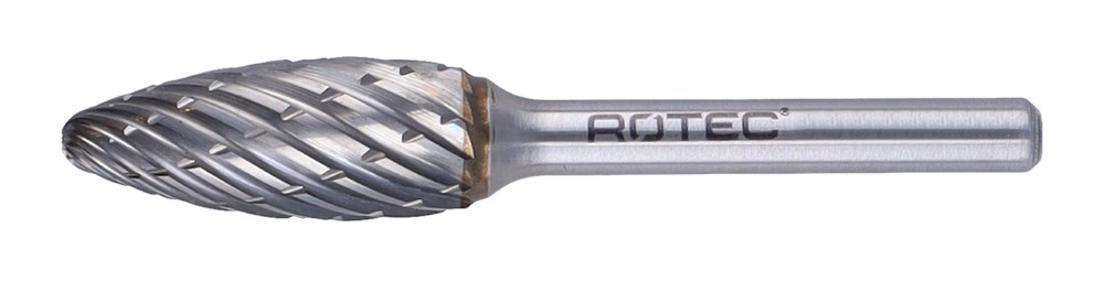 Hardmetalen stiftfrees in vlamvorm, in diverse vertandingen.