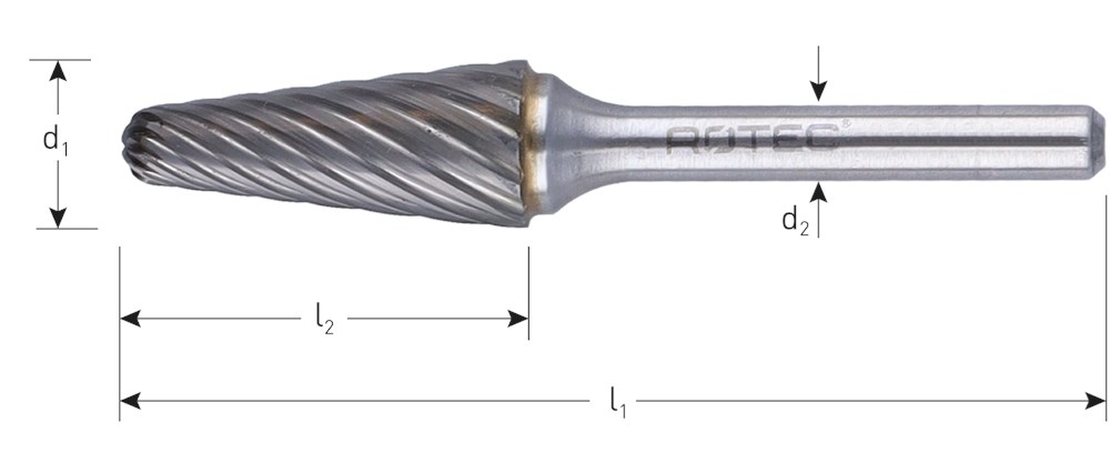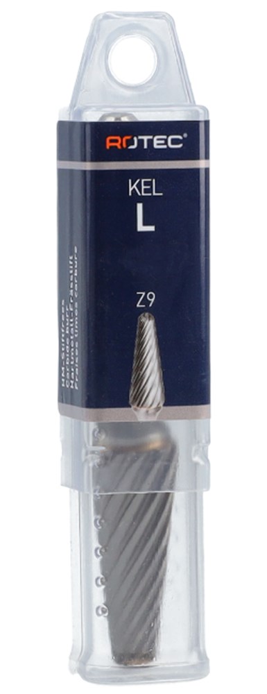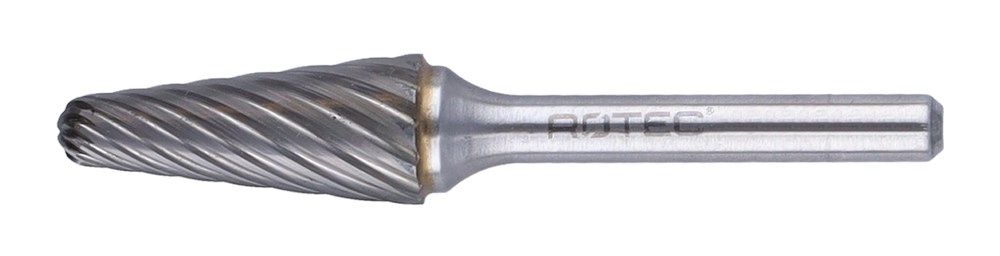 Hardmetalen stiftfrees in kegelvorm met ronde kop, in diverse vertandingen.
