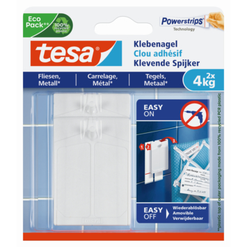 Deze tesa® Klevende Spijkers voor Tegels & Metaal hebben een draagkracht tot 4kg per stuk en als je er twee gebruikt, kunnen ze twee keer zoveel dragen. Ze zijn speciaal ontwikkeld voor gladde en harde oppervlakken zoals tegels, de meeste metalen oppervlakken en glas. Ze zijn een fantastische manier om decoratieve voorwerpen en keukengerei op te hangen zonder je muren te beschadigen. En het allermooiste? Dankzij de Powerstrips® Technology kun je de Klevende Spijker verwijderen wanneer je maar wilt en er blijft niets achter waaraan je kunt zien dat hij daar ooit heeft gezeten.