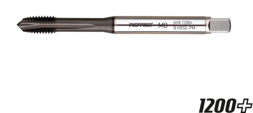 HSS-E PM machine tap '1200+' (336): DIN 371 : 1x M3, M4, M5, M6, M8 en M10. DIN 376 : 1x M12