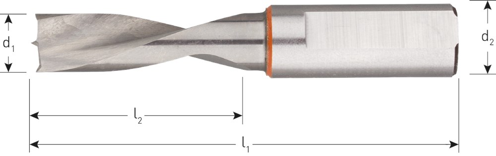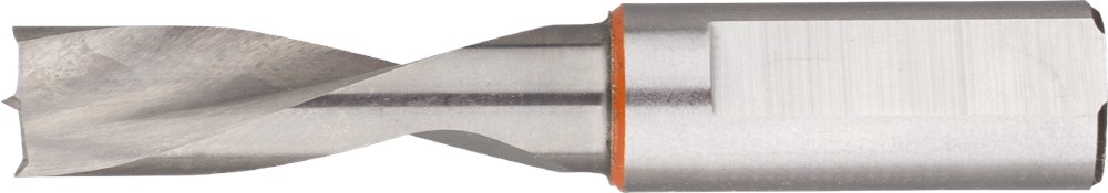 VHM drevelboor, centreerpunt, cilindrische schacht met spanvlak en instelschroef. Linksdraaiend.