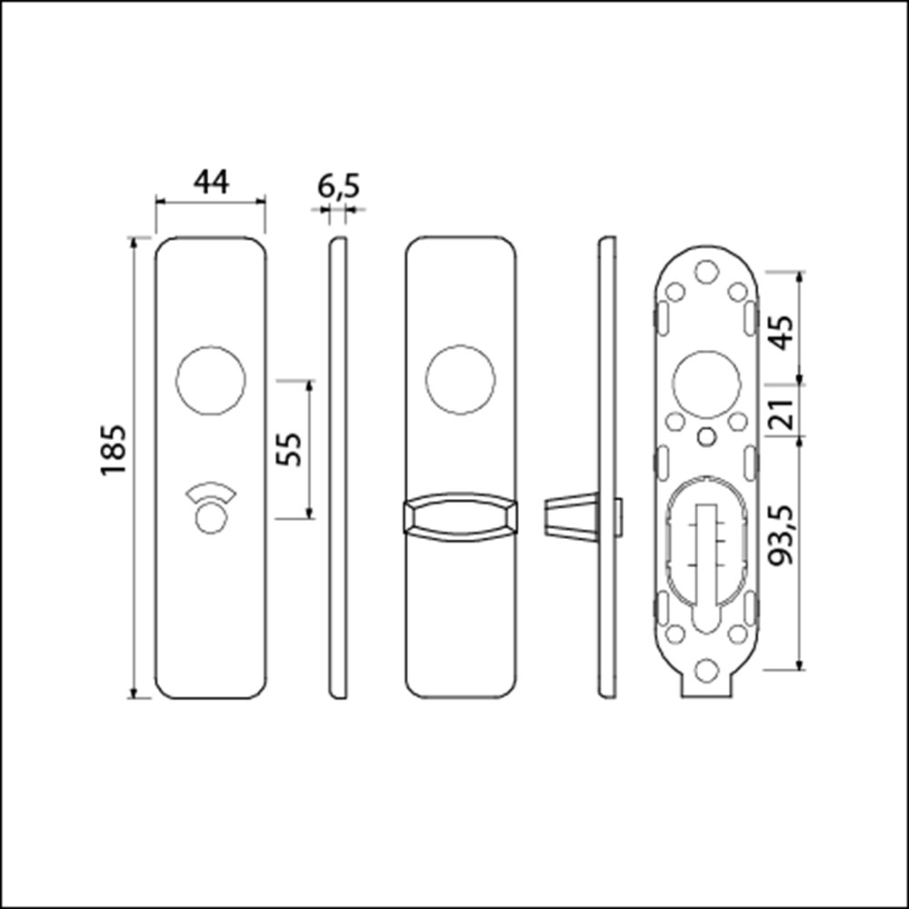 Kortschild 185/44 RH Klik kenmerkt zich door de blinde bevestiging van een hoogwaardig geanodiseerde aluminium afdekplaat op een nylon onderplaat met geintegreerde nylon ring.