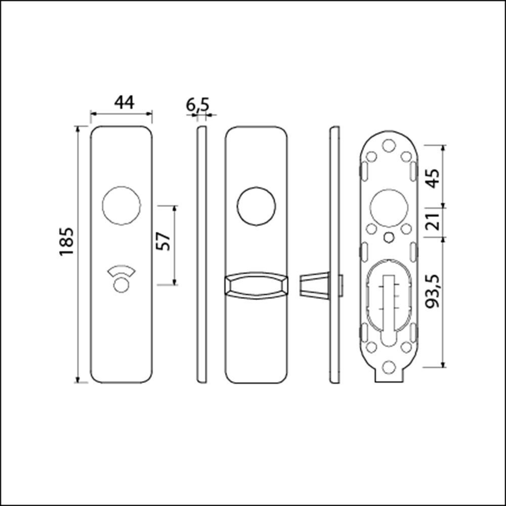 Kortschild 185/44 RH Klik kenmerkt zich door de blinde bevestiging van een hoogwaardig geanodiseerde aluminium afdekplaat op een nylon onderplaat met geintegreerde nylon ring.