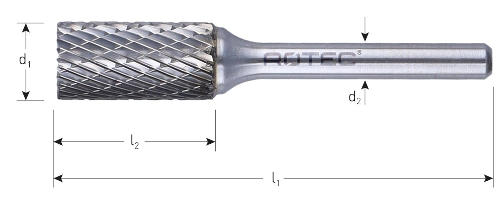 Hardmetalen stiftfrees in cilindervorm, met kopvertanding, kruisvertand.